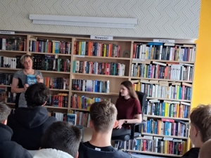 W październiku klasa 3TSE spotkała się z pisarką panią Julią Śliwkiewicz .Nasi uczniowie rozmawiali o ,,Open Mind’’, książce, którą pani Śliwkiewicz napisała i pytali ją o plany dotyczące kolejnych książek. Spotkanie odbyło się w Bibliotece Miejskiej w Łodzi, filia nr 65.